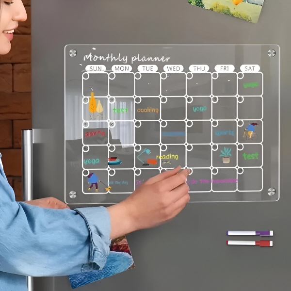 📐 2 lentų rinkinys, kiekviena 40 x 30 cm – skaidrus akrilas, veikia ant bet kokio standartinio magnetinio šaldytuvo paviršiaus, pridedami markeriai ir šluostė