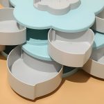 Dviejų sluoksnių saugykla, kuri atsidaro kaip gėlė, leidžia lengvai tvarkyti virtuvę ir taupyti vietą.