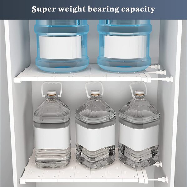 - Pakuotę sudaro: Komplekte: 1x išplečiama spintos įtempimo lentyna, skirta drabužinei, virtuvei, vonios kambariui.