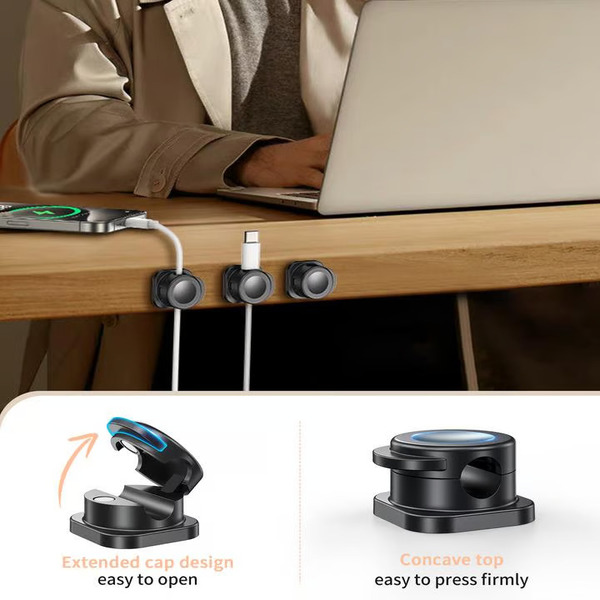 Laiko įkrovimo laidus tvarkingus ir neleidžia jiems nukristi nuo stalo.