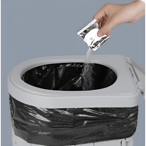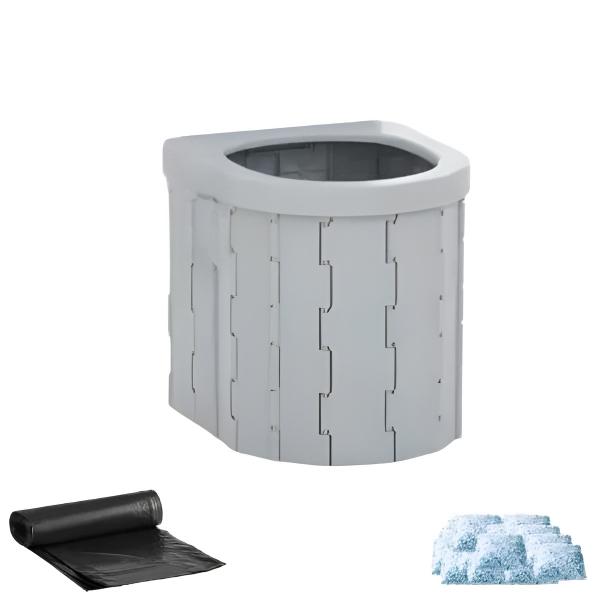 Dėl sulankstomos konstrukcijos ir pridedamo maišelio šį tualetą lengva nešiotis su savimi bet kur ir jis gali tilpti net mažame automobilyje.