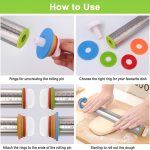 Naudokite 2 mm žiedą ploniems makaronų lakštams ir traškiems krekeriams. 3 mm žiedą trapiems ir cukriniams sausainiams, kurie kiekvieną kartą iškepa tolygiai. 6 mm žiedą picos pagrindams ir sūriems pyragams. 10 mm žiedą storai fokačijai, tortų dengimui cukrine mase ir storiems pyragaičiams. Keturi žiedai, keturi visiškai skirtingi rezultatai – visa tai su vienu 55 cm nerūdijančio plieno kočėlu.