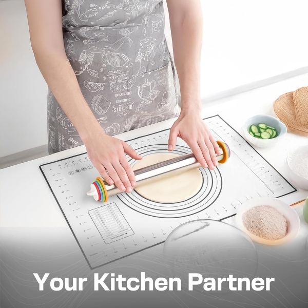 ⚙️ Neprilimpantis nerūdijančio plieno volas, 55 cm ilgio – miltų nesikaupia plyšiuose, nuplaukite per kelias sekundes arba dėkite tiesiai į indaplovę