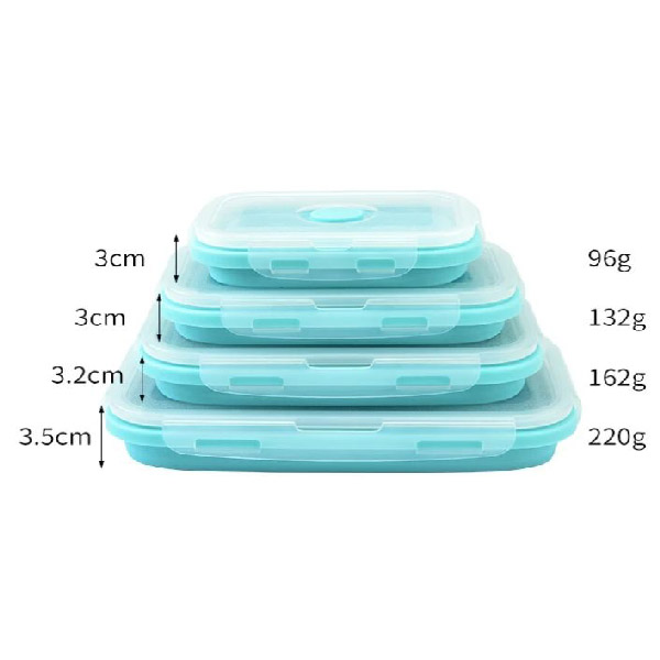 📦 Pakuotėje yra: 4x Sulankstomos silikoninės talpyklos (350 ml, 500 ml, 800 ml, 1200 ml)